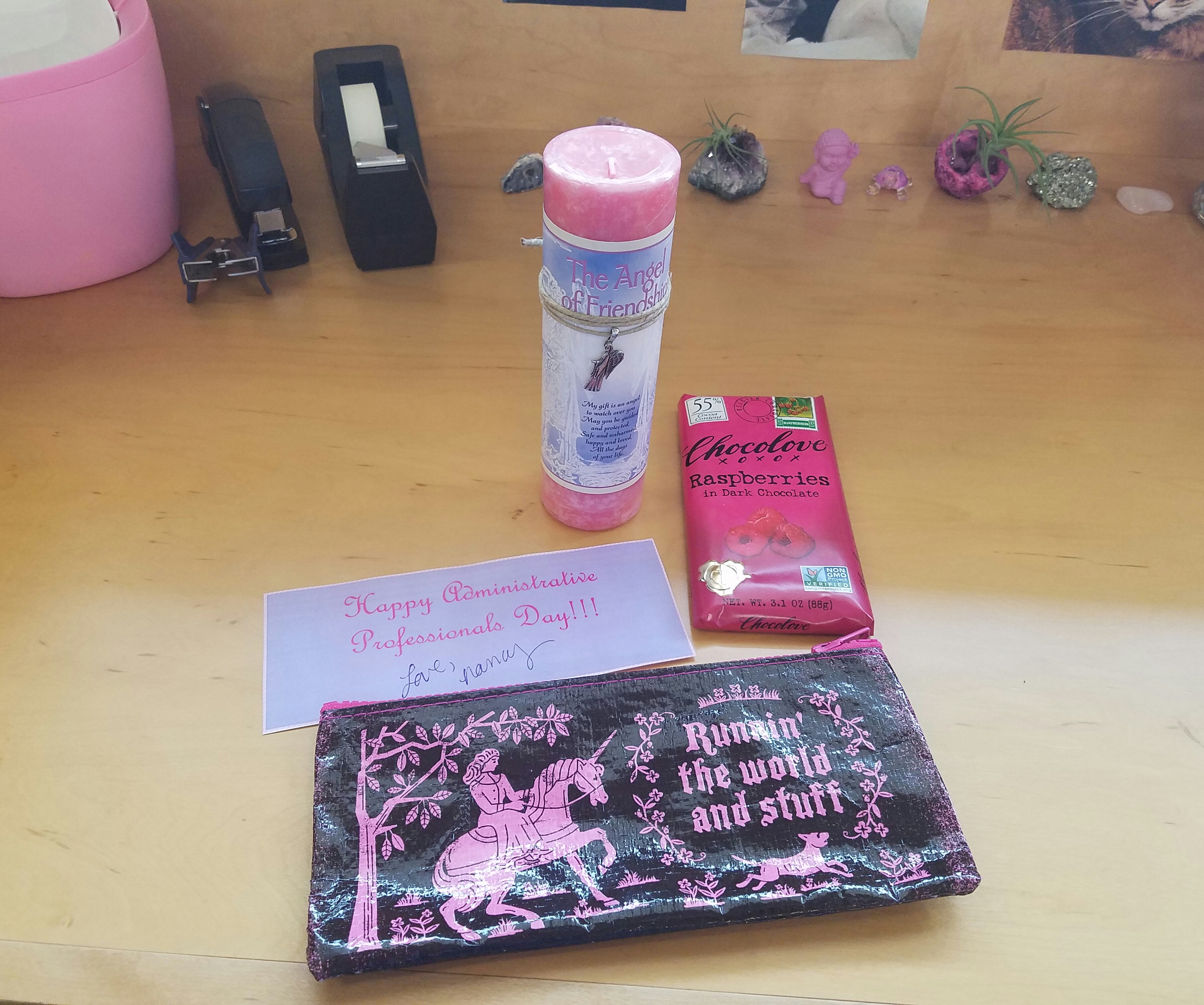 Happy Administrative Professionals Day! April 26, 2017April 26, 2017 I received sweet gifts from one of my fave colleagues and beautiful flowers from our staff for administrative professionals day! Love! Share this: Click to email a link to a friend (Opens in new window) Email More Click to print (Opens in new window) Print Click to share on Reddit (Opens in new window) Reddit Share on TumblrPocketLike Loading...