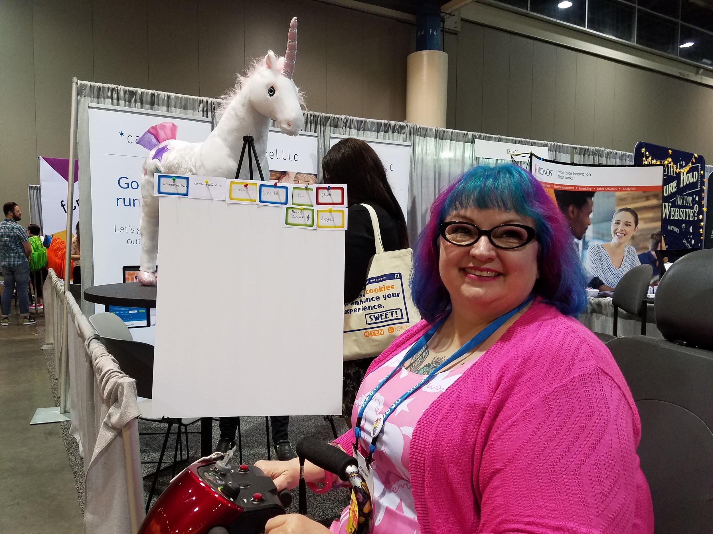 TheAdminUnicornonamobilityscooterat18NTC Previous Next Published April 20, 2018 at 2500 × 1875 in 10 Things I Loved About #18NTC The Admin Unicorn on my mobility scooter in front of a giant unicorn I had high hopes of winning. I’m not saying the game was rigged, but… Congrats to whoever won it! 😉